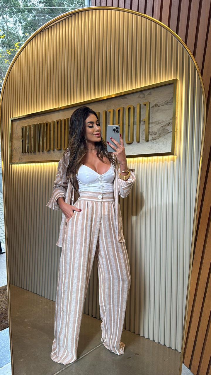 CALÇA SANTORINI EM ALFAITARIA - MODELAGEM LONGA RETA E DESPOJADA