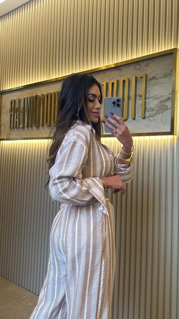 CALÇA SANTORINI LISTRADA LISTRADA/CROCHET CHOCOLATE