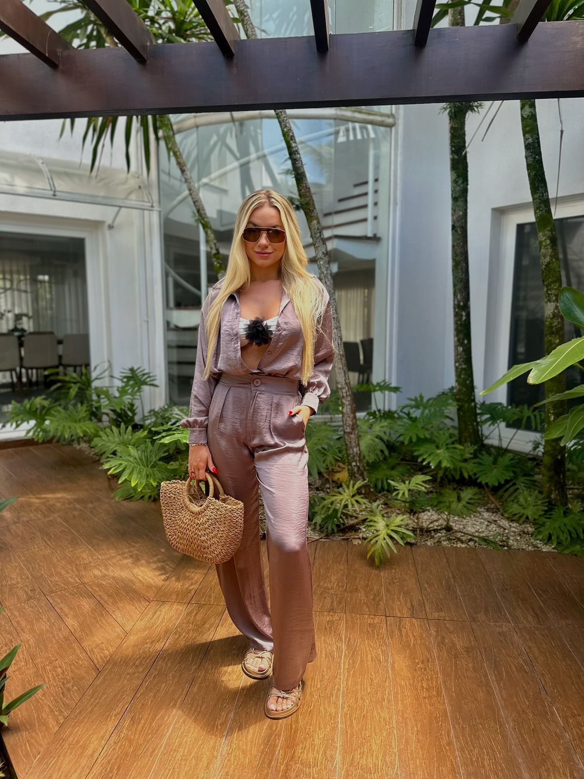 CALÇA SEDA - MODELAGEM LONGA RETA E DESPOJADA
